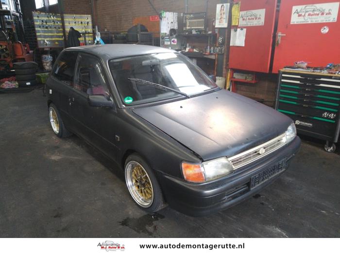 Deze Toyota Starlet met voertuig ID:V108333 van 1995 is op Monday 13 October 2025 door ons opgenomen voor demontage. Onderdelen van deze Toyota Starlet kunt u terug vinden in onze online voorraad of op dit voertuig bij ons op het terrein.