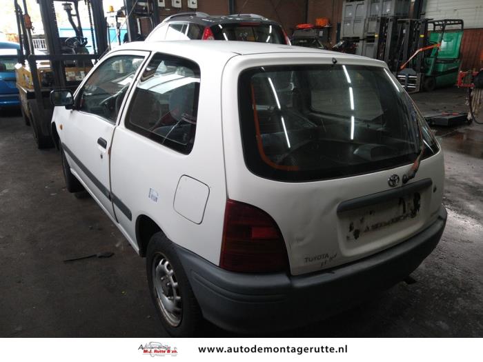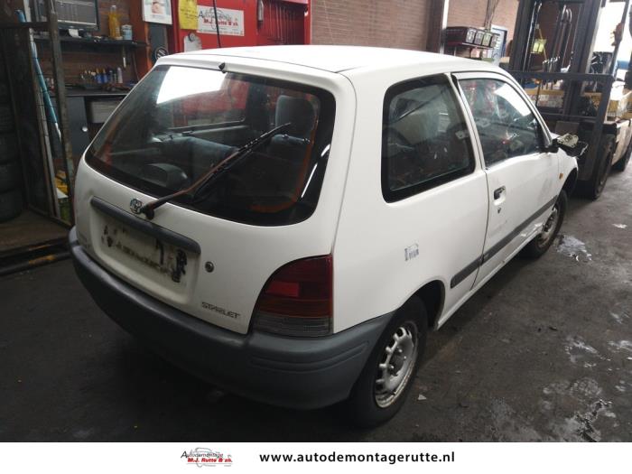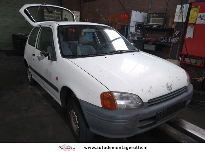 Deze Toyota Starlet met voertuig ID:V108415 van 1998 is op Friday 17 October 2025 door ons opgenomen voor demontage. Onderdelen van deze Toyota Starlet kunt u terug vinden in onze online voorraad of op dit voertuig bij ons op het terrein.