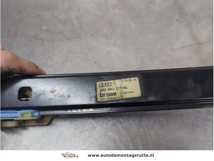 De Ruitmechaniek 4Deurs rechts-voor is gedemonteerd uit een A4 Avant (B8), Combi, 2007 / 2015 1.8 TFSI 16V, Combi/o, Benzine, 1.781cc, 118kW (160pk), FWD, CABB; CDHB; CCUA, 2007-11 / 2012-03, 8K5