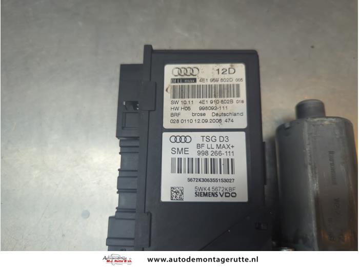 De Motor electrisch raam is gedemonteerd uit een A8 (D3), Sedan, 2002 / 2010 4.2 TDI V8 32V Quattro, Sedan, 4Dr, Diesel, 4.134cc, 240kW (326pk), 4x4, BVN, 2005-07 / 2010-07