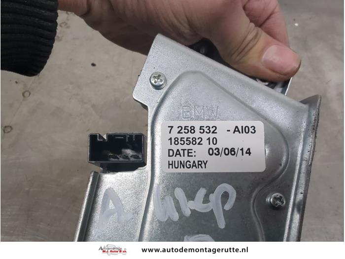 De Motor Ruitenwisser achter is gedemonteerd uit een 1 serie (F20), Hatchback 5-drs, 2011 / 2019 114i 1.6 16V, Hatchback, 4Dr, Benzine, 1.598cc, 75kW (102pk), RWD, N13B16A, 2012-07 / 2015-02, 1R11; 1R12