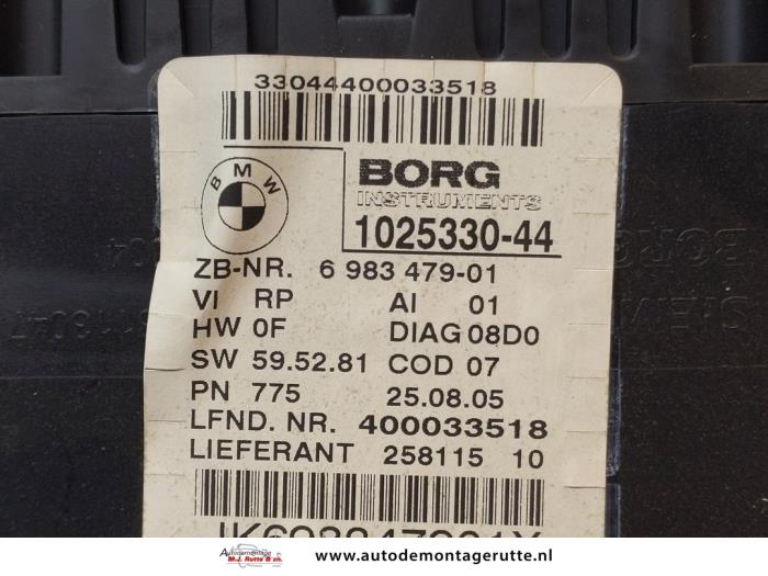 De Kilometerteller KM is gedemonteerd uit een 3 serie (E90), Sedan, 2005 / 2011 320i 16V, Sedan, 4Dr, Benzine, 1.995cc, 110kW (150pk), RWD, N46B20B, 2004-12 / 2007-08