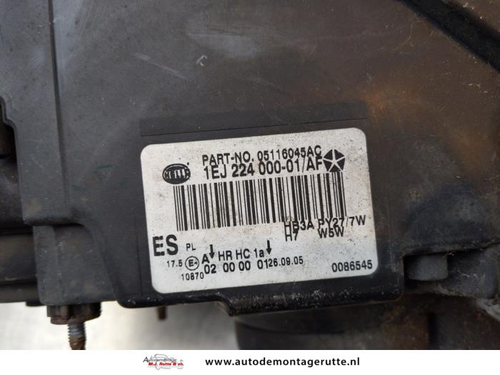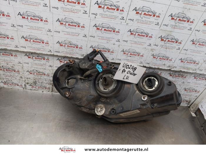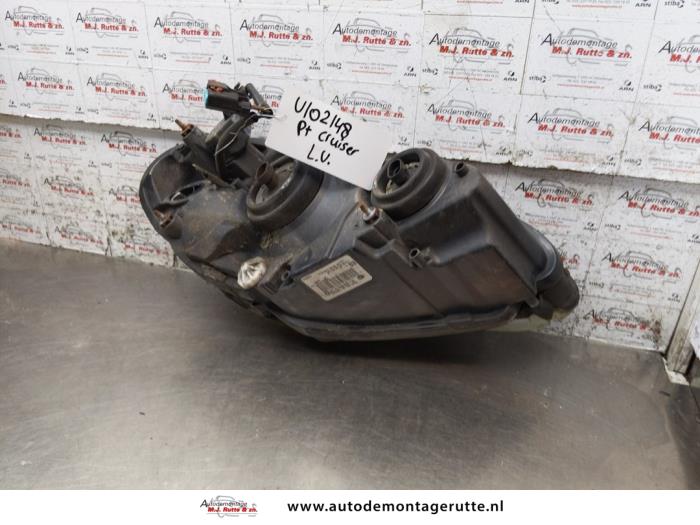 De Linker Koplamp is gedemonteerd uit een PT Cruiser, Hatchback, 2000 / 2010 2.4 16V, Hatchback, Benzine, 2.429cc, 105kW (143pk), FWD, S, 2005-08 / 2010-12