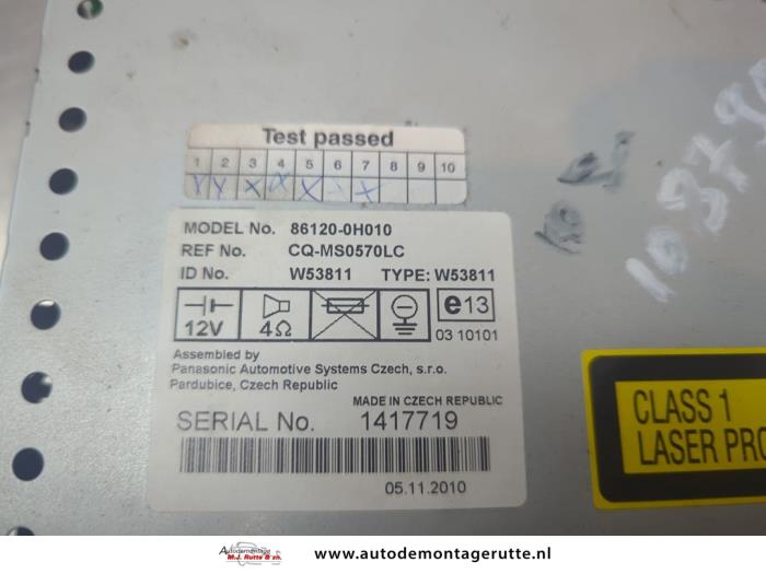 De Radio is gedemonteerd uit een C1, Hatchback, 2005 / 2014 1.0 12V, Hatchback, Benzine, 998cc, 50kW (68pk), FWD, 1KRFE; CFB; 384F; CFA, 2005-06 / 2014-09, PMCFA; PMCFB; PNCFA; PNCFB