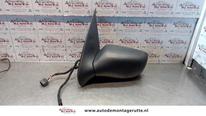 De Buitenspiegel links is gedemonteerd uit een Fiesta IV/V, Hatchback, 1995 / 2002 1.25 16V, Hatchback, Benzine, 1.242cc, 55kW (75pk), FWD, DHA; DHB; DHC; DHD; DHE; DHF; DHG, 1995-08 / 2002-01, FAJ; FBJ; JAS; JBS