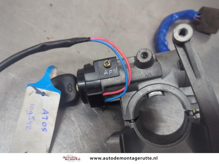 De Kontaktslot+Sleutel is gedemonteerd uit een Atos, Hatchback, 1997 / 2008 1.0 12V, Hatchback, Benzine, 999cc, 43kW (58pk), FWD, G4HC, 2001-03 / 2003-07