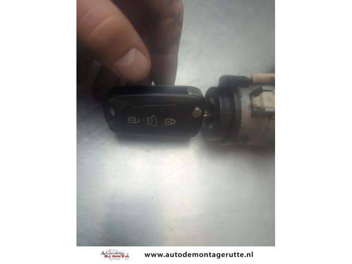 De Sleutel+Contactslot is gedemonteerd uit een i20, Hatchback, 2008 / 2015 1.2i 16V, Hatchback, Benzine, 1.248cc, 57kW (77pk), FWD, G4LA, 2008-09 / 2012-12, F5P1; F5P4