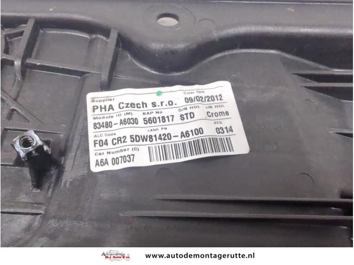 De Raammechaniek 4Deurs rechts-achter is gedemonteerd uit een i30 (GDHB5), Hatchback, 2011 1.6 GDI Blue 16V, Hatchback, Benzine, 1.591cc, 99kW (135pk), FWD, G4FD; EURO4, 2011-12 / 2016-12, GDHB5P5; GDHB5P6; GDHB5PD; GDHB5PE