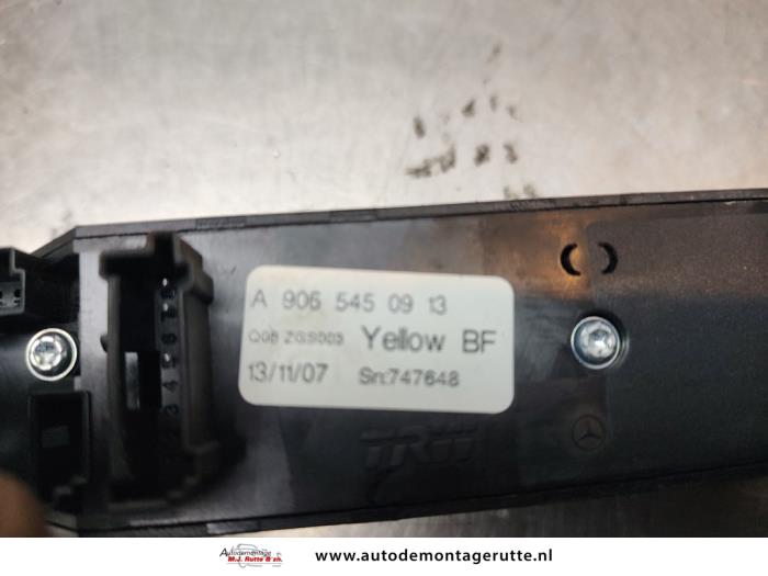 De Schakelaar Elektrisch Raam is gedemonteerd uit een Sprinter 3,5t (906.73), Bus, 2006 / 2020 311 CDI 16V, Bus, Diesel, 2.148cc, 80kW (109pk), RWD, OM646985, 2006-06 / 2009-12, 906.731; 906.733; 906.735