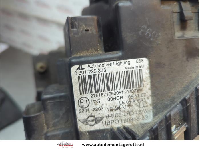 De Linker Koplamp is gedemonteerd uit een Mini (R56), Hatchback, 2006 / 2013 1.4 16V One, Hatchback, Benzine, 1.397cc, 70kW (95pk), FWD, N12B14A, 2006-11 / 2010-03, ME31; ME32