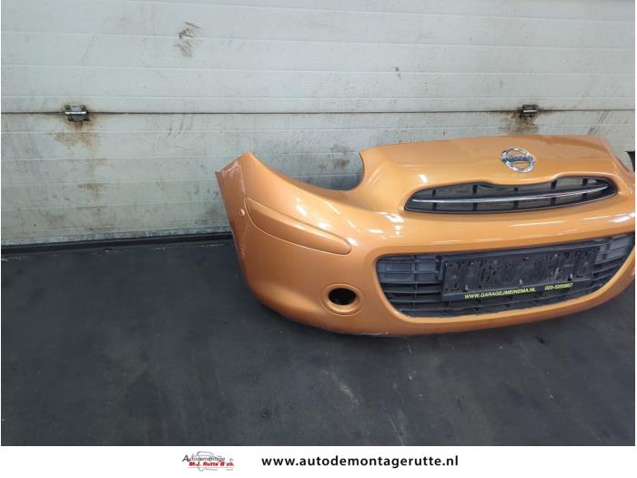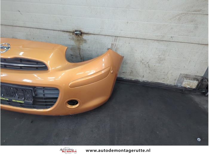 De Bumper voor is gedemonteerd uit een Micra (K13), Hatchback, 2010 / 2016 1.2 12V DIG-S, Hatchback, Benzine, 1.198cc, 72kW (98pk), FWD, HR12DDR, 2011-03 / 2015-10, K13B
