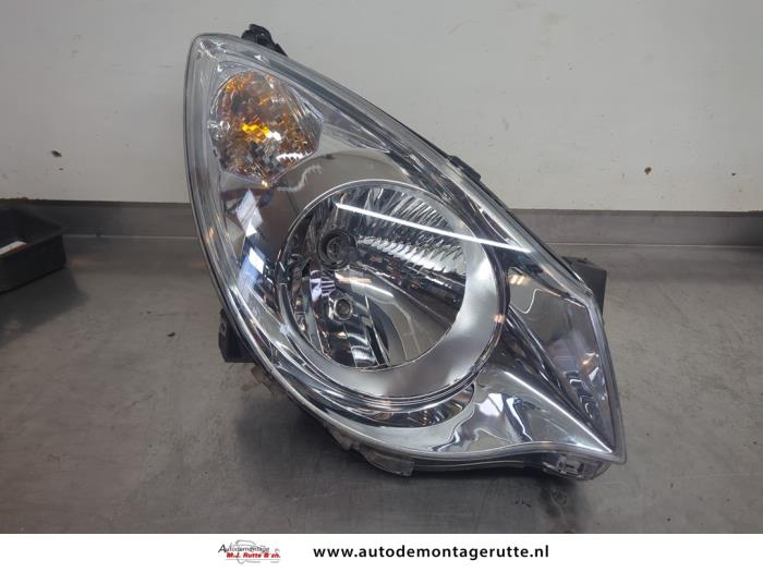 De Koplamp rechts is gedemonteerd uit een Agila (B), MPV, 2008 / 2014 1.0 12V ecoFLEX, MPV, 996cc, 48kW (65pk), FWD, K10B; EURO4, 2010-01 / 2011-06