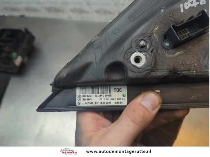De Buitenspiegel links is gedemonteerd uit een Insignia Sports Tourer, Combi, 2008 / 2017 1.6 Turbo 16V Ecotec, Combi/o, Benzine, 1.598cc, 132kW (179pk), FWD, A16LET, 2009-01 / 2013-06