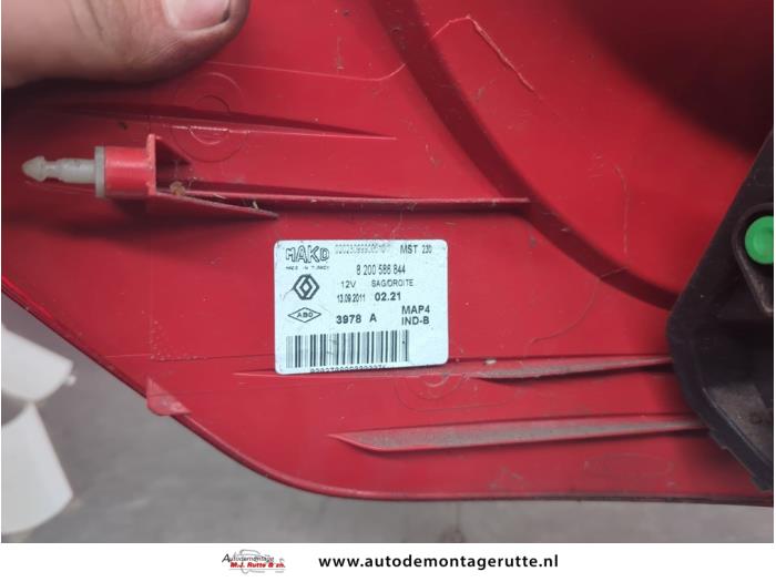 De Achterlicht rechts is gedemonteerd uit een Clio III Estate/Grandtour (KR), Combi, 2007 / 2014 1.2 16V TCE 100, Combi/o, Benzine, 1.149cc, 74kW (101pk), FWD, D4F784; D4FH7, 2007-11 / 2012-12, KR14; KR1P; KRC4; KRCP