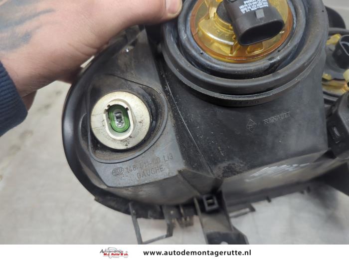 De Linker Koplamp is gedemonteerd uit een Clio II (BB/CB), Hatchback, 1998 / 2016 1.2, Hatchback, Benzine, 1.149cc, 43kW (58pk), FWD, D7F722, 1998-09 / 2007-10, BB; CB0A
