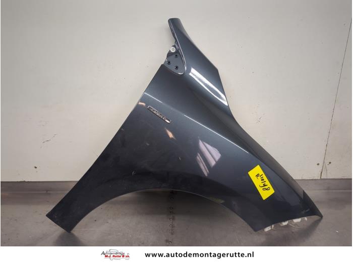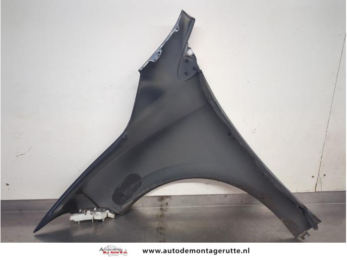 De Spatbord rechts-voor is gedemonteerd uit een Megane III Grandtour (KZ), Combi 5-drs, 2008 / 2016 1.2 16V TCE 115, Combi/o, 4Dr, Benzine, 1.197cc, 85kW (116pk), FWD, H5F400; H5FA4, 2012-03 / 2015-08, KZ11; KZD1