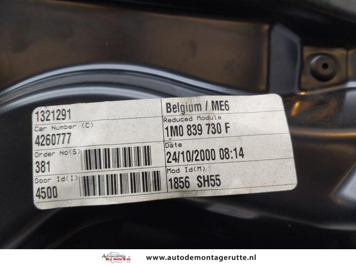 De Raammechaniek 4Deurs rechts-achter is gedemonteerd uit een Toledo (1M2), Sedan, 1998 / 2006 1.8 20V, Sedan, 4Dr, Benzine, 1.781cc, 92kW (125pk), FWD, APG, 1999-05 / 2004-09, 1M2