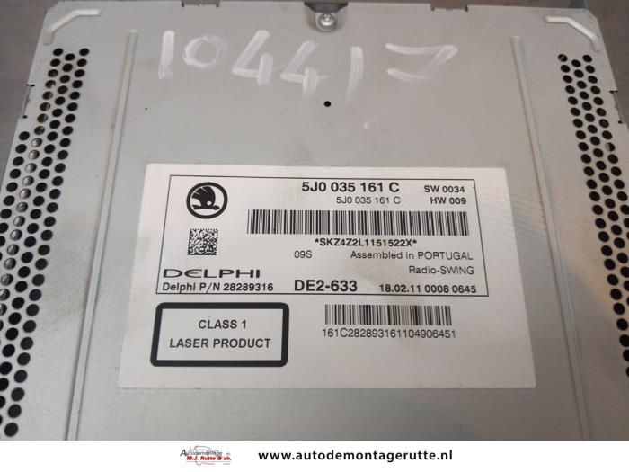 De Radio is gedemonteerd uit een Fabia II Combi, Combi 5-drs, 2007 / 2015 1.2 TDI 12V Greenline, Combi/o, 4Dr, Diesel, 1.199cc, 55kW (75pk), FWD, CFWA, 2010-05 / 2014-12