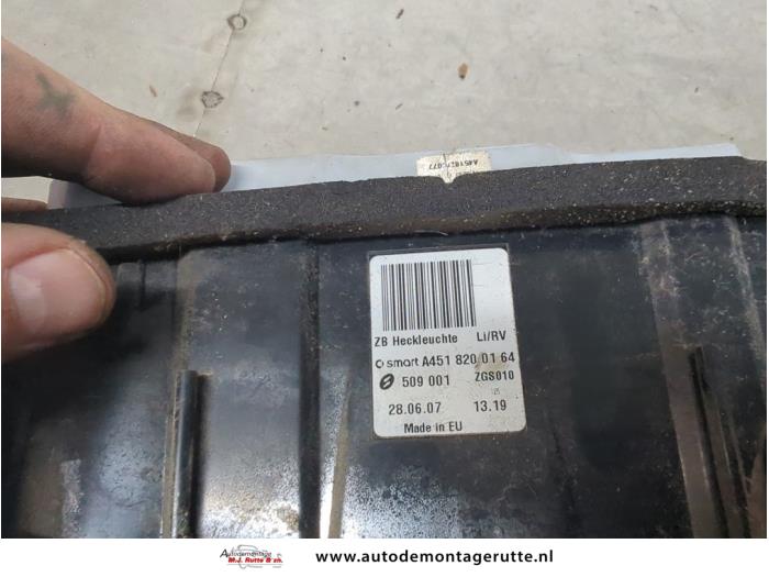 De Achterlicht links is gedemonteerd uit een Fortwo Coupé (451.3), Hatchback 3-drs, 2007 1.0 45 KW, Hatchback, 2Dr, Benzine, 999cc, 45kW (61pk), RWD, 3B21; 132910, 2007-01 / 2013-02, 451.330; 451.334