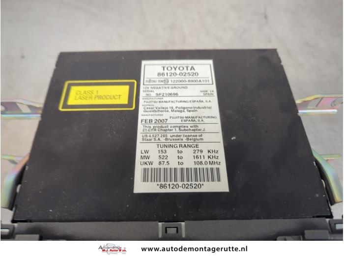 De Radio is gedemonteerd uit een Auris (E15), Hatchback, 2006 / 2012 1.6 Dual VVT-i 16V, Hatchback, Benzine, 1.598cc, 91kW (124pk), FWD, 1ZRFE, 2007-03 / 2012-09, ZRE151