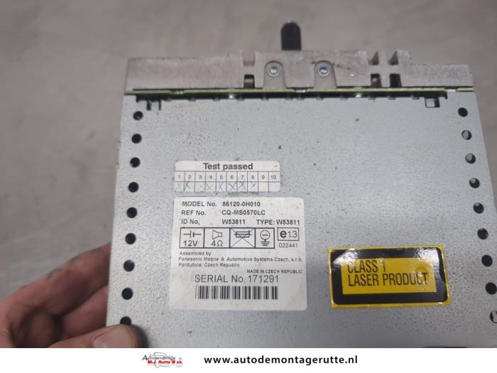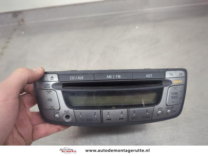 De Radio is gedemonteerd uit een Aygo (B10), Hatchback, 2005 / 2014 1.0 12V VVT-i, Hatchback, Benzine, 998cc, 50kW (68pk), FWD, 1KRFE, 2005-07 / 2014-05, KGB10