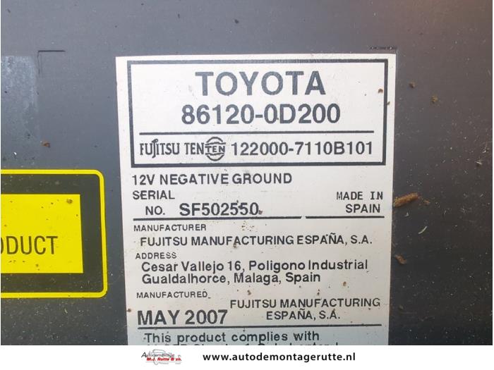 De Radio is gedemonteerd uit een Yaris II (P9), Hatchback, 2005 / 2014 1.0 12V VVT-i, Hatchback, Benzine, 998cc, 51kW (69pk), FWD, 1KRFE, 2005-08 / 2011-12, KSP90