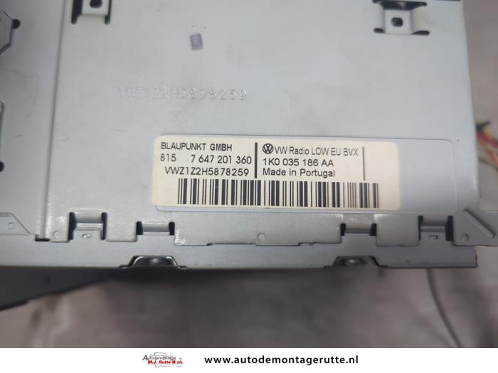 De Radio is gedemonteerd uit een Golf V Variant (1K5), Combi, 2007 / 2009 1.4 TSI 122 16V, Combi/o, Benzine, 1.390cc, 90kW (122pk), FWD, CAXA, 2007-06 / 2009-07, 1K5
