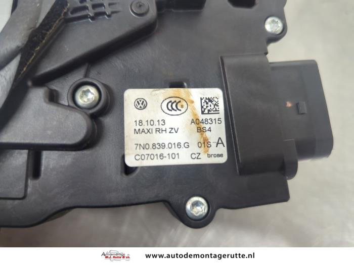 De Schuifdeur Slotmechaniek rechts is gedemonteerd uit een Sharan (7N), MPV, 2010 / 2022 2.0 TDI 16V, MPV, Diesel, 1.968cc, 130kW (177pk), FWD, CFGC; DLUB, 2013-01 / 2022-06