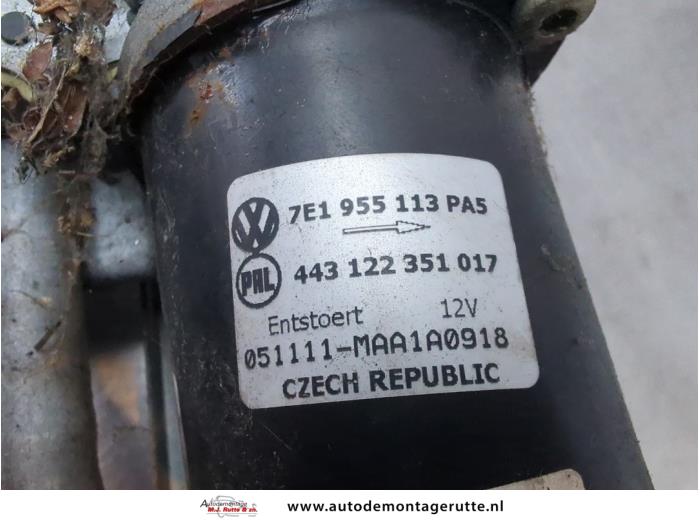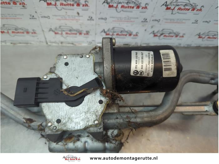 De Ruitenwismotor+Mechaniek is gedemonteerd uit een Transporter T5, Van, 2003 / 2015 1.9 TDi, Bestel, Diesel, 1.896cc, 77kW (105pk), FWD, AXB, 2003-04 / 2009-11, 7HA; 7HC; 7HH